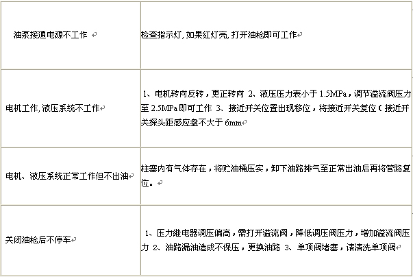 4、出油量可調,將兩接近開關距離加大,延長換向時間,出油量減小,反之出油量增大。出油壓力可調,將液壓溢流閥減小,出油壓力同時減小,正常情況下液壓表在2。5MPa為宜。出油壓力正常調在30MPa停止工作,如需調整時將壓力繼電器調壓閥增大或減小。