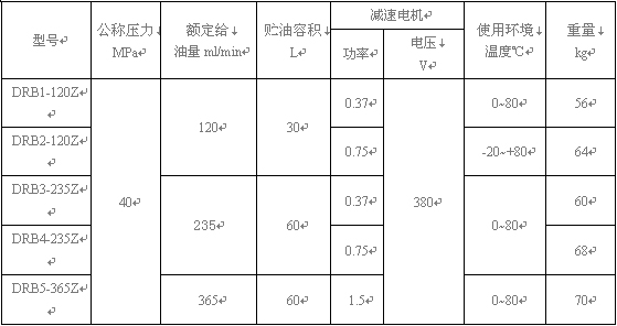 DRB-M系列電動潤滑泵,用于公稱壓力為40MPa的雙線式干油集中潤滑系統中供送油脂,也適用于單線遞進式干油集中潤滑系統中供送油脂,適用介質為針入度不低于220(25℃ 、150g)1/10mm的潤滑脂??膳鋫湟苿有≤?、膠管、油槍和電纜組成移動式電動潤滑泵裝置,適用于潤滑頻率低、潤滑點少、給油量大,不便于采用集中潤滑的單機設備,進行移動給油潤滑。